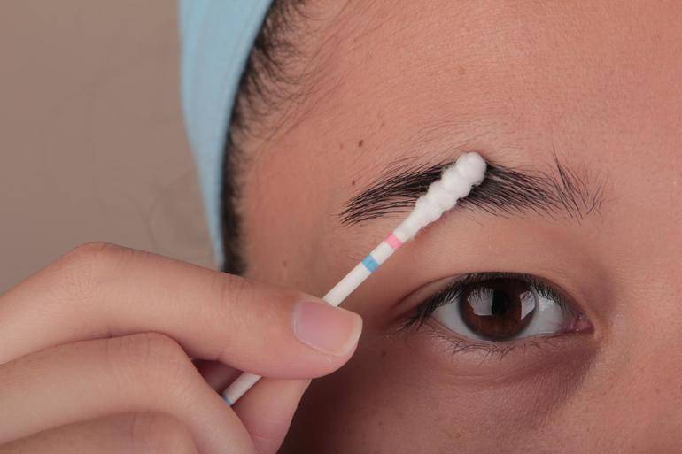 Работайте в перчатках. Иначе цвет изменят не только ваши брови, а и руки тоже. Наносите отвар ватной палочкой четко по линии бровей, чтобы не покрасить лишнего.