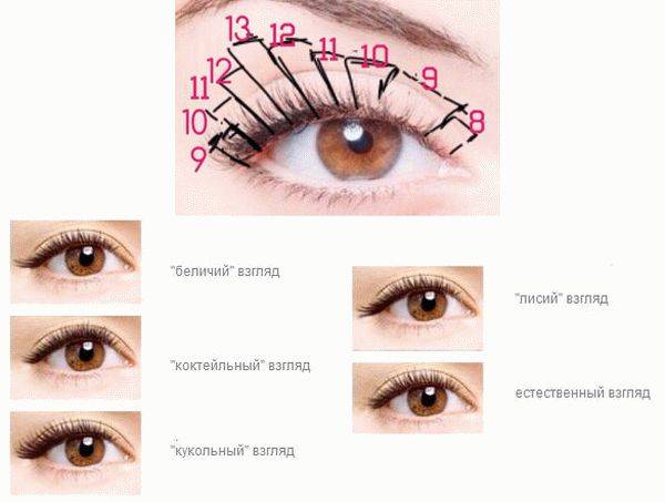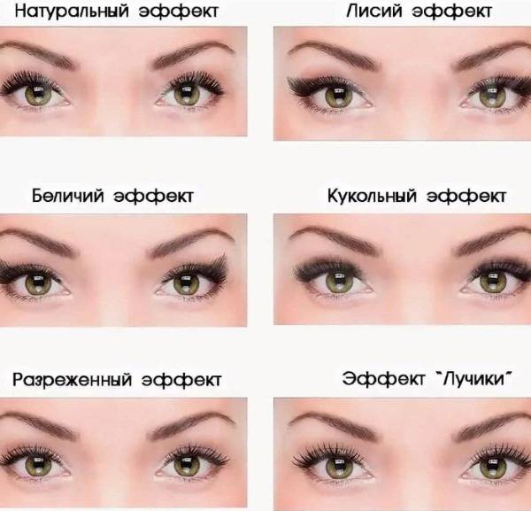 При далеко посаженных глазах применяют наращивание с «беличьим» и «кукольным» эффектом. С их помощью стремятся визуально округлить и «приблизить» глаза друг к другу.