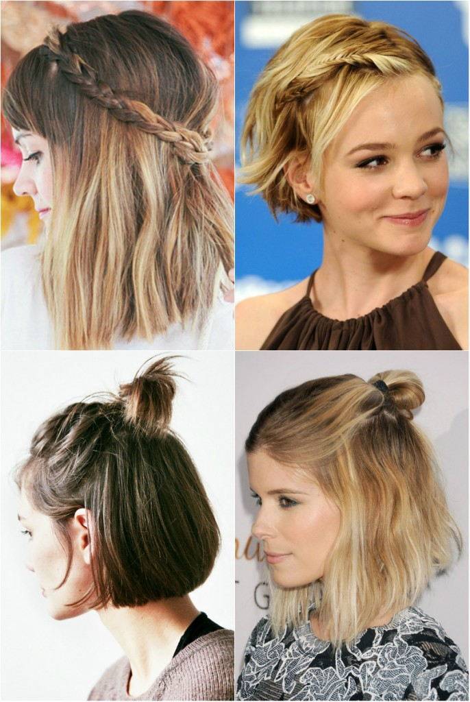 Средние волосы отлично заплетаются в колосок, укладываются в пучок и зачесываются назад.