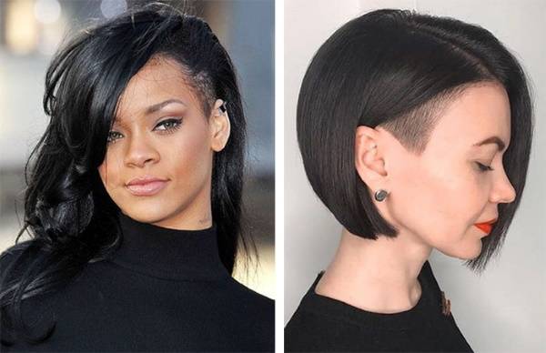 Стрижка отличается максимальной креативностью. Смелое и броское решение прически. Не подойдет обладательницам круглых и квадратных лиц. Зрительно увеличивает ширину. Можно украсить выбритый висок фигурным выстригом в виде рисунка. Креативное окрашивание усилит эффектность прически.