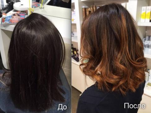 Балаяж на темные волосы, фото до и после, на короткие волосы или длинные, для домашней процедуры важна не длина, а ваш опыт. Он красиво смотрится и на стрижке боб каре, только если укладка не совсем короткая.