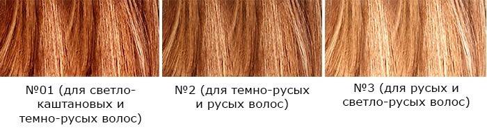 Чтобы выбрать нужный тон, его нужно сопоставить со своим природным цветом. Так, линия №1 – это отличный вариант для темно-коричневой шевелюры, набор №2 подходит для темно-русых волос, а серия №4 – для русых и светло-русых.