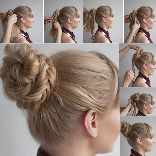 Из кос легко сделать не только классическую прическу, но и оформить различные варианты пучков. Используйте ваши навыки плетения и экспериментируйте с созданием пучков из: французской косы, рыбьего хвоста, из 4 прядей или кос с подхватом.