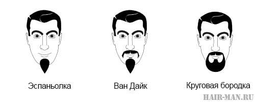 - бородка Ван Дайка – клиновидная бородка соединяется с тонкими усами;