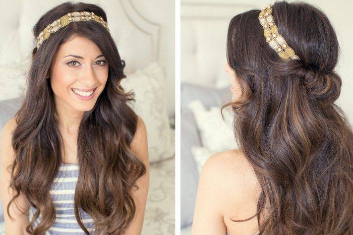 Различные невидимки или заколки в морском стиле для закрепления длинных волос также приветствуются. Небольшие диадемы, закрепленные на голове, максимально приблизят прическу с повязкой к стилю греческой богини.