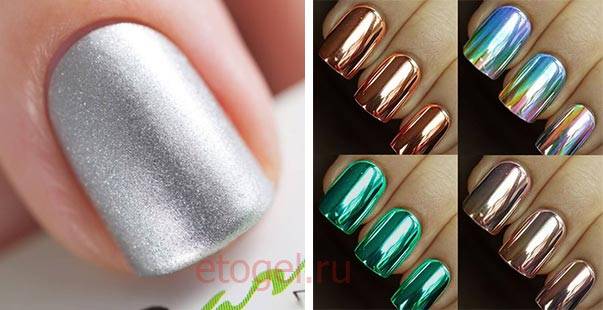 - Металлик, «зеркальная пыль». Она помогает получить зеркальный маникюр;