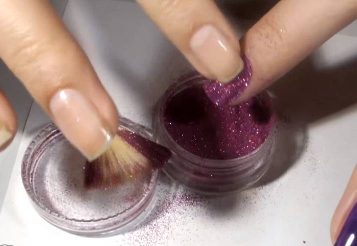 остатки блесток, которые останутся на кутикуле, нужно стряхнуть при помощи кисти.