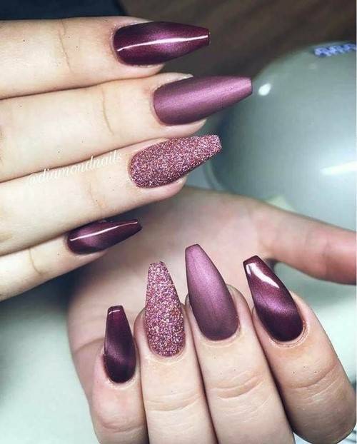 Особенно интересно маникюр выглядит в вишневом, сливовом и фиолетовом цвете. Это наиболее популярные оттенки нынешнего сезона.