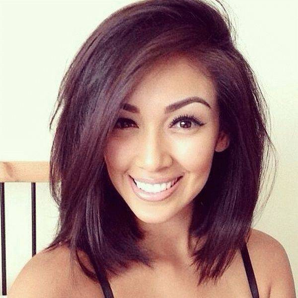 С челкой и без нее. Особенно такая прическа эффектно смотрится у женщин со слегка удлиненным лицом, а образ после выполненной стрижки становится довольно красивым. Каре с косой челкой подойдет тем, кто имеет некоторые ассиметричные черты лица, потому что такая челка скрасит и сгладит любые недостатки.