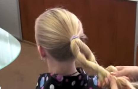- Выделенную проборами зону волос завязать в хвостик резинкой.
