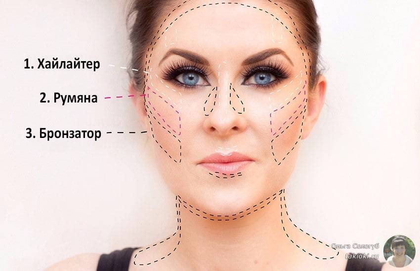 Схема нанесения хайлайтера для корректировки формы лица