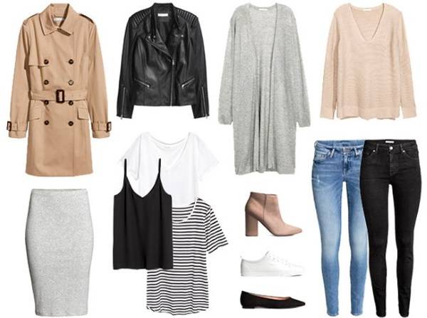 Пример осеннего капсульного гардероба для женщины на работу: