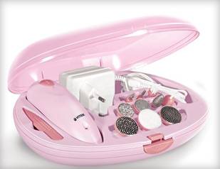 Это идеальное приспособление, которое предназначено для выполнения маникюра и педикюра. Также с его помощью можно обеспечить полноценный уход стопам. В состав входит 7 насадок, которые помогают приводить ногти в порядок.