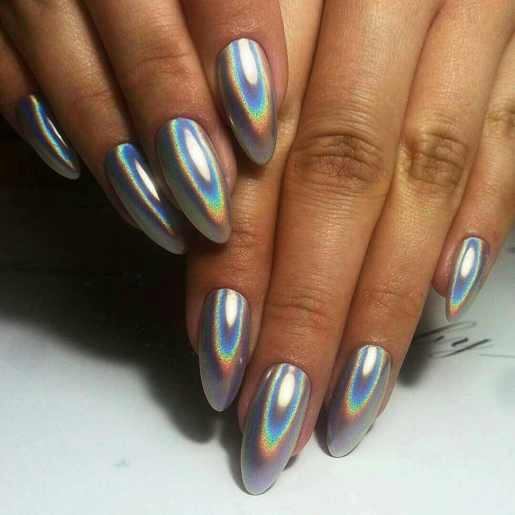 Чтобы выглядеть красивой и яркой можно сделать зеркальный дизайн, используя втирку для ногтей. Если знать как делать и использовать порошок для втирки, наносить его на ногти не составит большого труда.