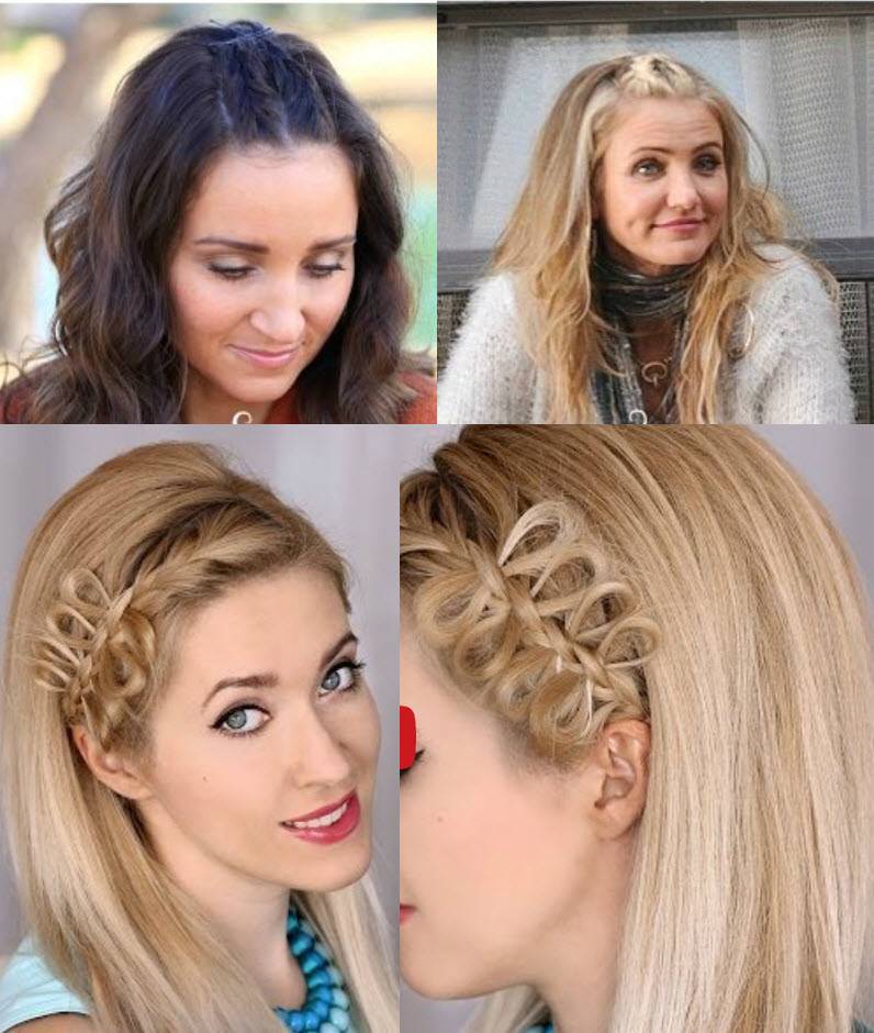 - Для создания ежедневной укладки используют имитацию побритого виска. Рядом с эти участком заплетают маленькие колоски либо скручивают тонкие жгутики, закалывая их невидимками. Но выполняют только с одной стороны.