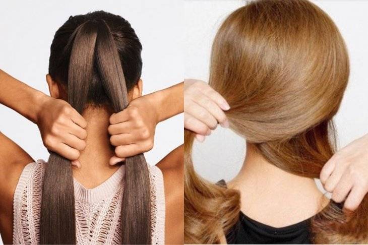 2) Туго закрепите волосы резинкой на середине хвоста.