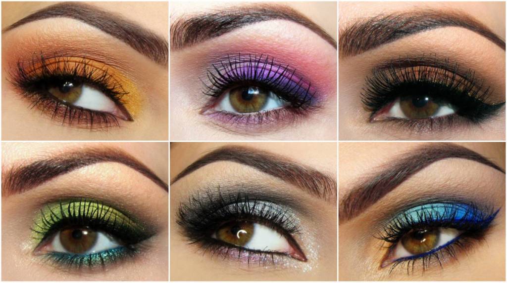 Карие глаза, пожалуй, самые универсальные в плане мейкапа век, потому что с ними сочетаются большинство похожих и контрастирующих оттенков. Лучше всего для таких девушек подойдёт тёмно- и светло-серые тени, пепельные гаммы, а в летний период дамы будут роскошно смотреться с яркими тонами в голубой или зелёной гамме.