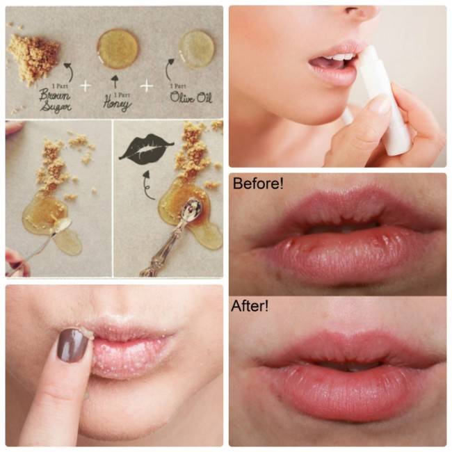 Вам понадобится мед и сахар (как вариант — кофе мелкого помола или корица). Можно добавить несколько капель любимого эфирного масла. Быстренько смешали, нанесли на губки, аккуратно потерли, смыли и покрыли бальзамом. Всё! Несколько простых действий, а эффект от них поистине неоценимый. Ведь теперь ваши губы гладкие, помада на них ляжет ровно и не забьется в шелушащиеся складочки.
