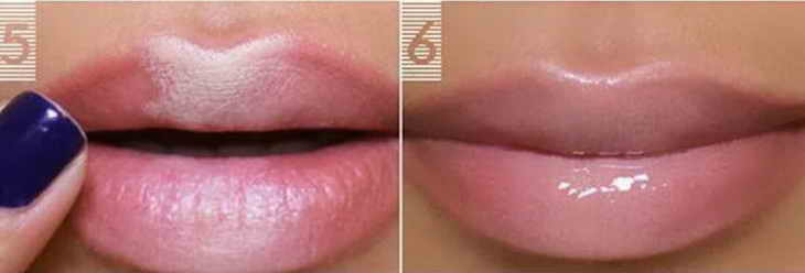 Чтобы губы казались более пухлыми, используют блески. Их наносят без осветления контура или лица. Для них не делают специального контурного ограничителя, потому что он не будет заметен.