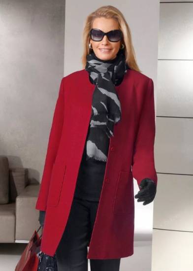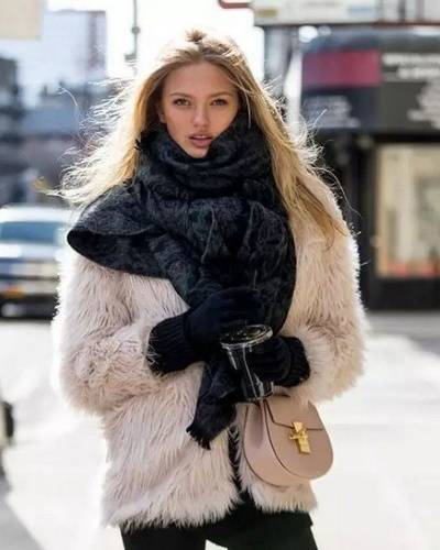 В этом случае лучше выбирать классическое однотонное пальто, потому что всё внимание будет забирать на себя аксессуар