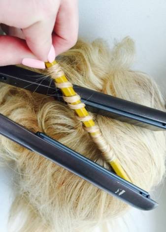 Для создания более экстремальной укладки можно использовать цилиндрические предметы различного диаметра – например, при использовании обычного карандаша можно получить мелкие задорные кудряшки. Технология создания такой прически до боли проста – отделяется тонкая прядь волос, закручивается на карандаш, после чего прогревается утюжком, после снятия пряди с карандаша получаются крепкие красивые кудри.