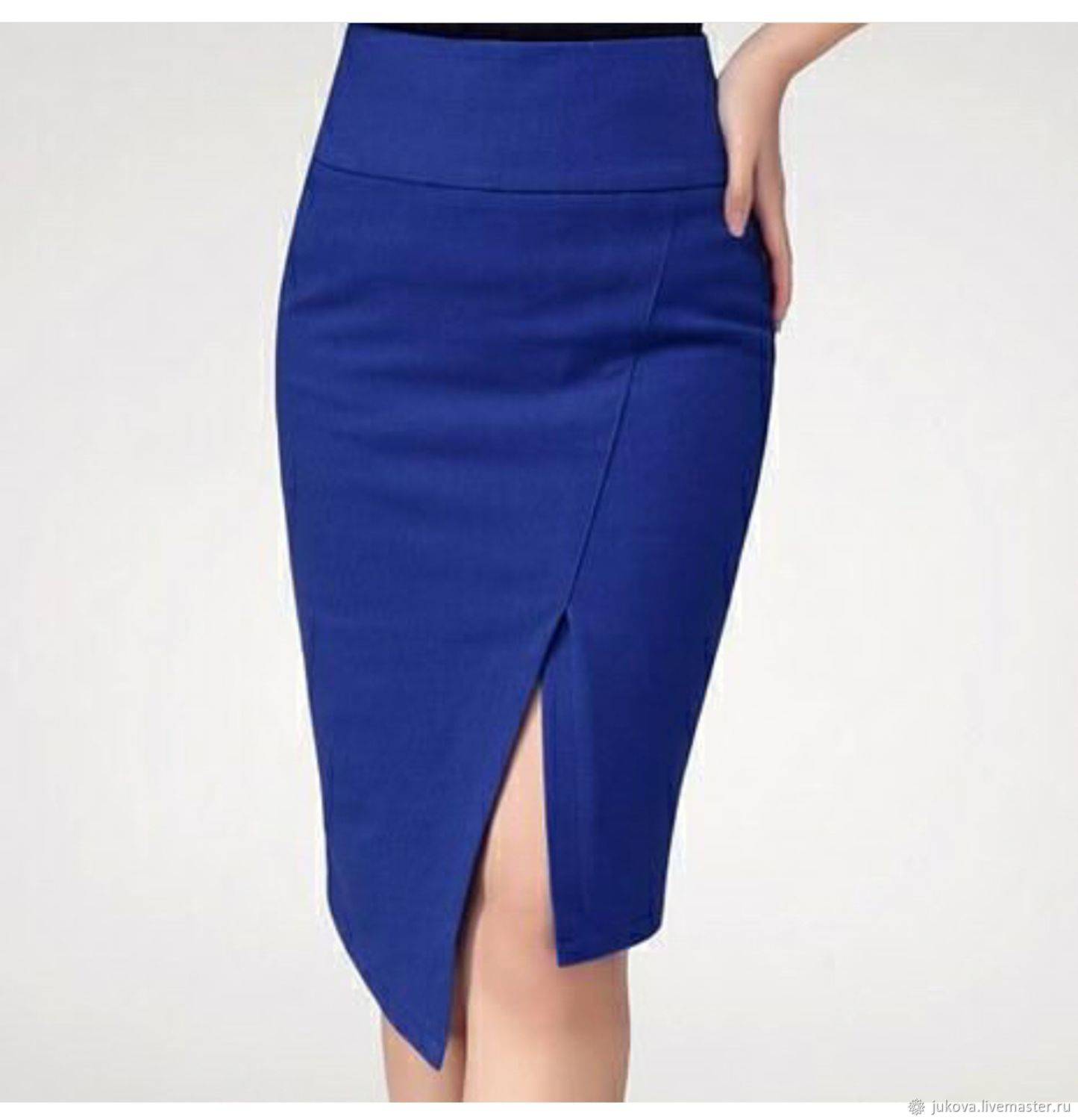 Без выкройки можно сделать еще один интересный вариант юбки-карандаша – модель с запахом.