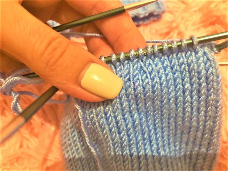 - Вяжем 5-6 см узором простой резинкой (1х1).