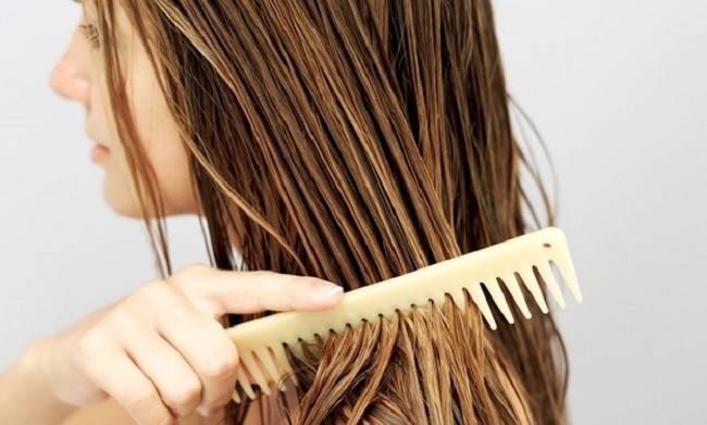 - Нанесите смесь на пряди от кончиков до корней. Будьте очень внимательны, чтобы ничего не пропустить. Также следите за тем, чтобы слой был равномерным.