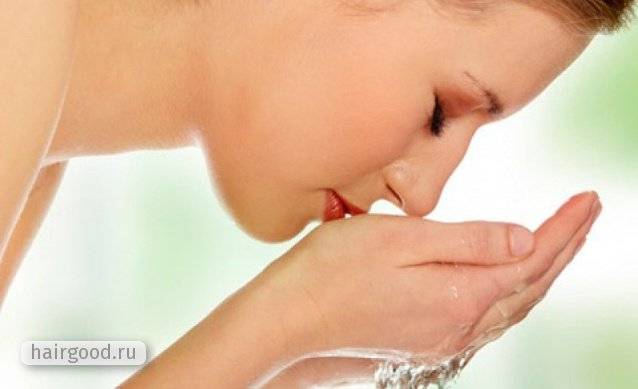 - Сполосните лицо чистой водой комнатной температуры. Можно использовать талую жидкость.