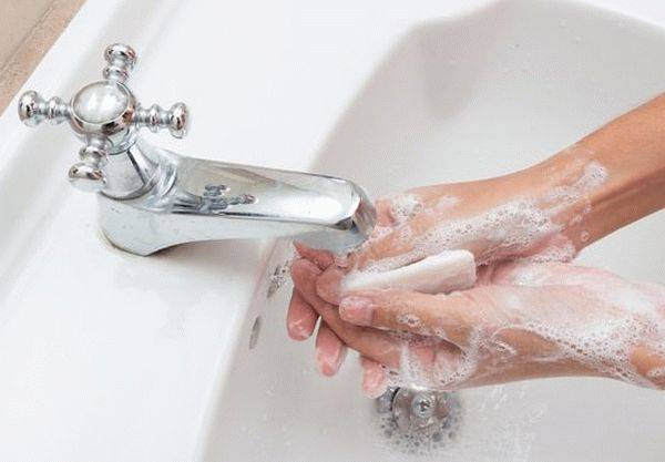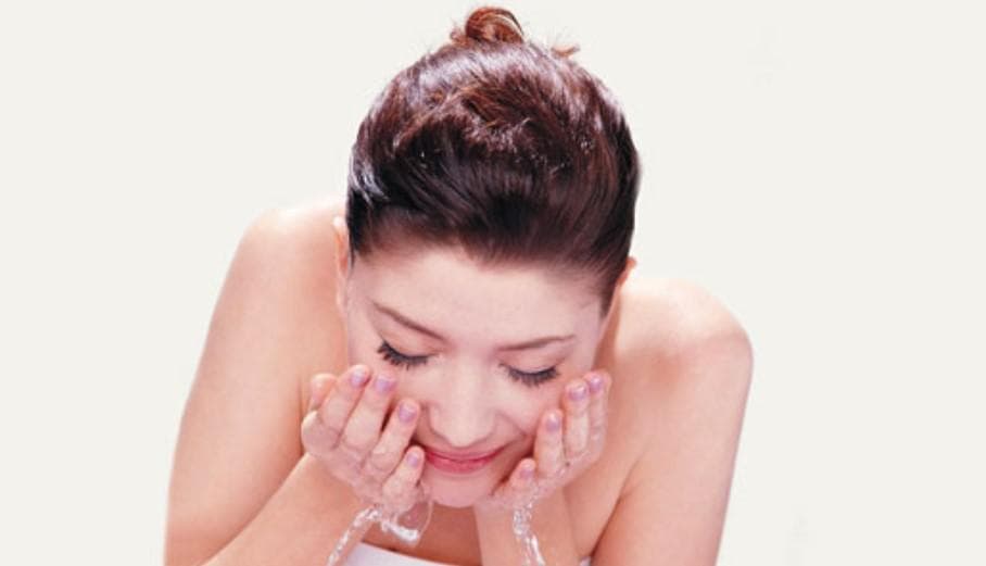 - Намочить лицо, ни в коем случае нельзя тереть.