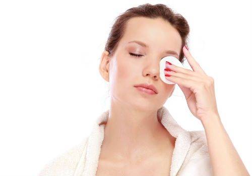 Смоченный ватный диск аккуратно прикладывают к веку, а потом осторожно убирают. Можно провести, не прижимая диск, по направлению от кончиков к ресничному краю