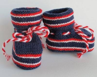 Эти пинетки рассчитаны на длину ступни малыша 8 см. Выполняются платочной вязкой спицами номер 3.