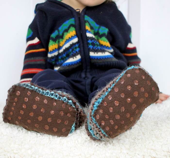 Тогда созданный вами «шедевр» непременно понравится крохи, и он будет надевать тапочки с большим удовольствием.