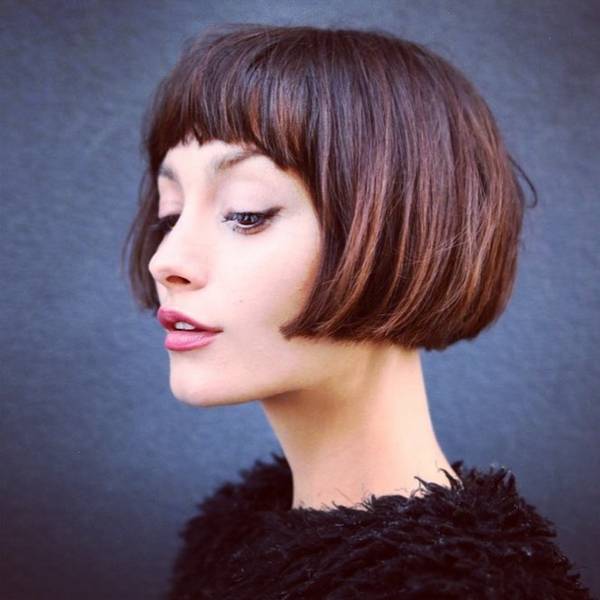Короткое каре с челкой идеально подходит обладателям овального и квадратного типа лиц. Прическа смягчает грубые черты лица, визуально уменьшает широкие скулы и делает формы более круглыми.