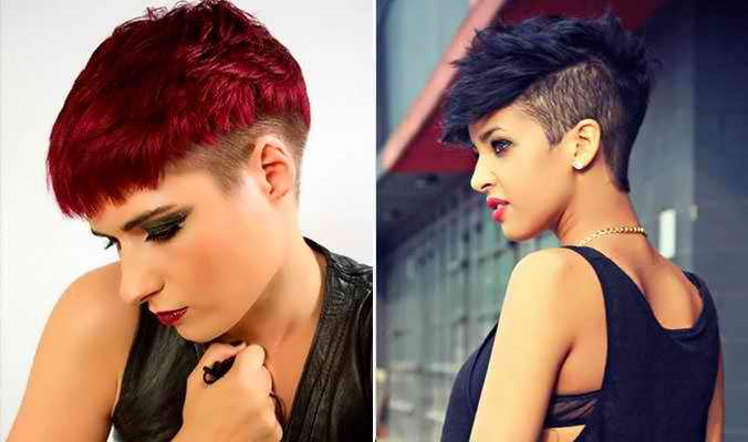 Экстравагантная причёска подходит только смелым девушкам. На выбритом затылке можно создавать рисунки наподобие татуировки. Другие стилисты в сочетании с такой стрижкой предлагают окрашивание длинного чуба в модные оттенки.
