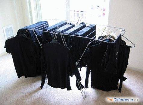 После этого развесьте вещи на сушилке. На балкон вывешивать их не стоит, иначе под воздействием солнечных лучей изделие снова потеряет свой темный оттенок.