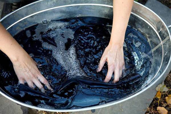 Используйте широкую посуду, в которую вещь помещается полностью, чтобы ткань окрасилась равномерно. Лучше всего для этой цели подходит алюминиевый таз или бак для белья. Во время кипячения раствор нужно периодически помешивать, чтобы не образовывались разводы на ткани.