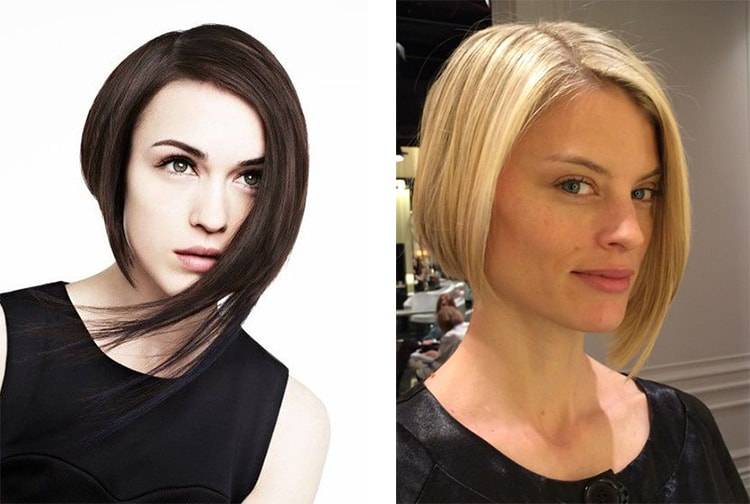 - Женщинам с прямыми и гладкими волосами подойдет градуированная стрижка боб на короткие волосы или каре. С ней можно придумать массу вариантов укладки.