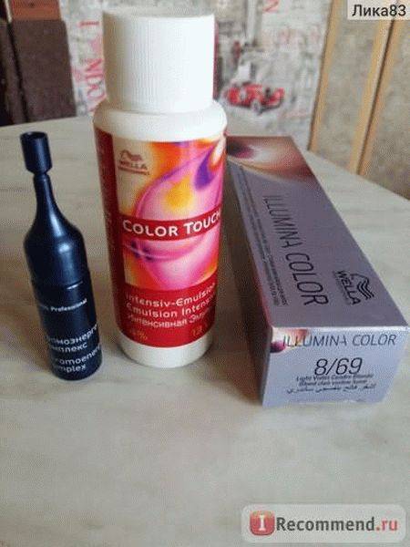 Wella Color Touch – тоже считают профессиональной. Ее разрабатывали профессионалы своего дела в Германии. Кератин и воск, который входит в состав краски, способен структуру волос не только оставить без повреждений, но и улучшить. В составе отсутствует аммиак.