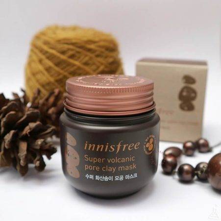 Innisfree Super Volcanic Pore Clay Mask – маска для лица очищающая . Основной элемент — вулканическая глина, является увлажняющим и очищающим средством. Экстракт зелёного чая тонизирует кожу, минеральная вода обогащает ее полезными витаминами.