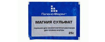 Приготовление раствора рекомендуется выполнить с вечера. Пакетик Магния сульфата весом 25 г высыпать в полный стакан с водой. Утром выпить раствор магнезии.