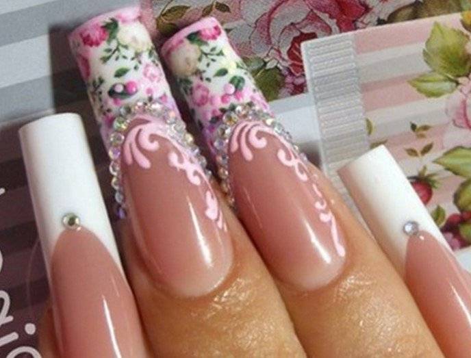 Обилие украшений, подчеркнет соответствующий маникюр, не отвлекая внимание на себя.