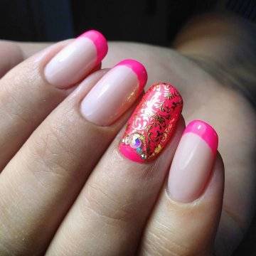 Нежно-розовый и ярко-розовый френч на ногтях: фото