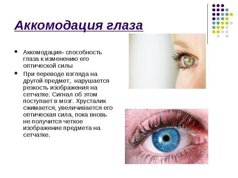 Аккомодация – способность зрительного аппарата фокусировать взгляд на объектах расположенных на разных расстояниях.