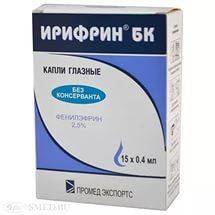 - Ирифрин – капли расслабляют цилиарную мышцу, убирают симптомы ложной миопии.