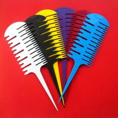 - Частичное окрашивание можно провести с помощью обычного гребня с тонкими редкими зубчиками, которые часто продаются в наборе вместе с краской. Для этого прямо на расческу нужно нанести красящий состав и распределить его по локонам.