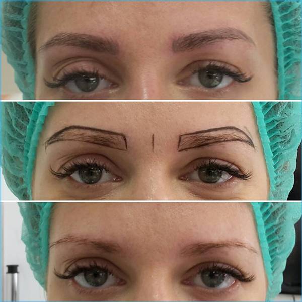 От болезненных ощущений помогает избавиться околобровная анестезия. Сама процедура введения под кожу пигмента проводится с помощью лопаточки, на конце которой несколько тоненьких игл, глубину введения их уже контролирует косметолог.