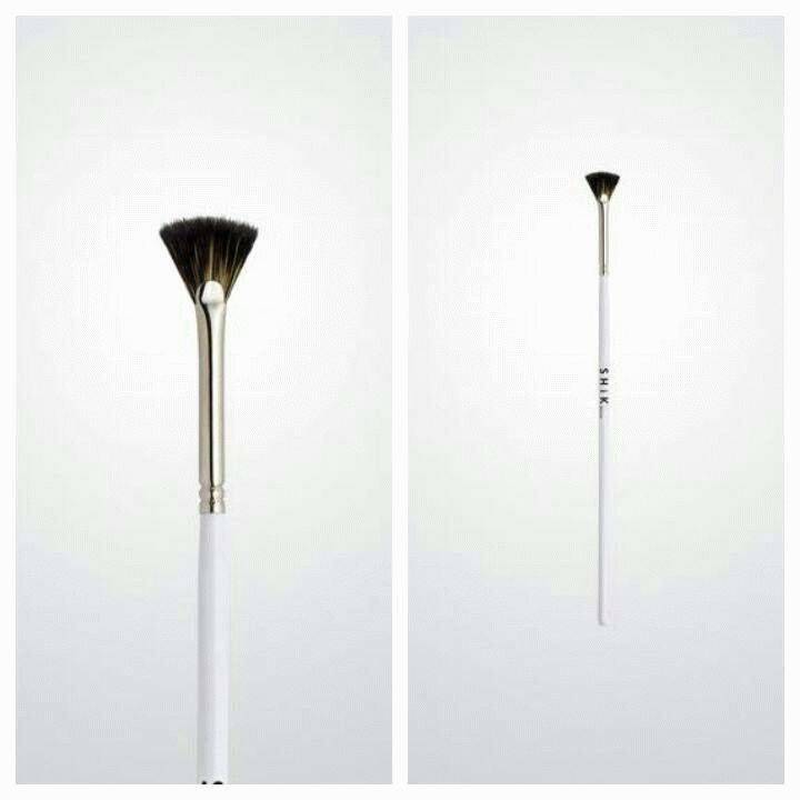 Для выполнения завершающих штрихов используются веерные профессиональные кисти для макияжа. Это изделия с тонким основанием и веерным распределением ворса. С его помощью можно удалить излишки косметических средств и выровнять макияж. Некоторые визажисты использует их еще и для нанесения сухих хайлайтеров.