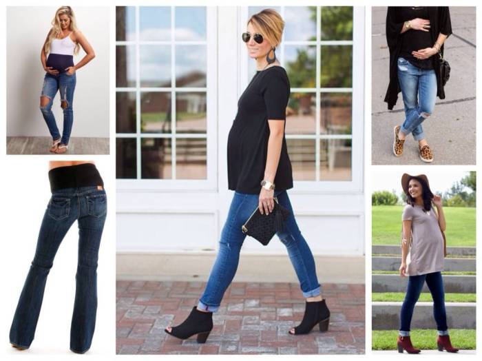 Как видно на фото, свободная джинсовая одежда для беременных может оказаться очень полезной как на раннем, так и на более поздних сроках:
