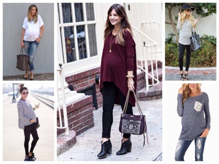 На этих фото показана комфортная одежда для беременных на ранних сроках: